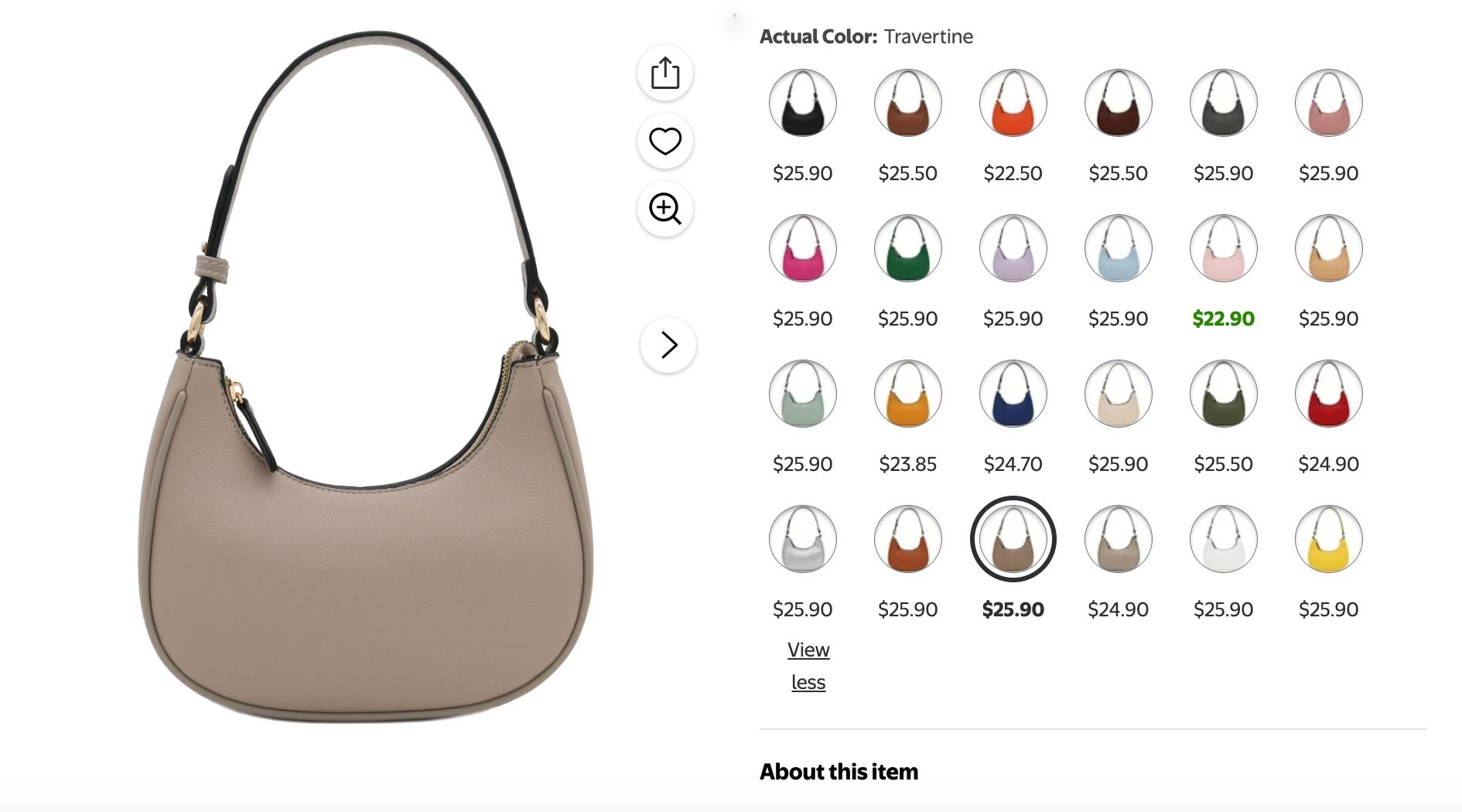 Surprisingly, the purse that showed up was Nude. While it’s hard to say if it was truly AI or there was a human in the loop, my intent was reflected, even though it went beyond what could be explicitly specified in the dropdowns:
