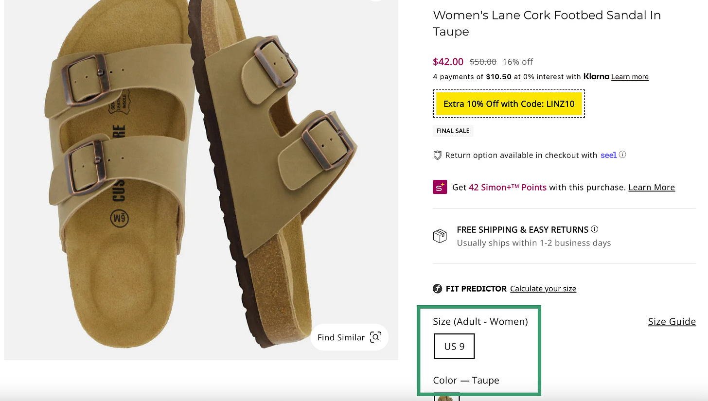 But, this isn’t a perfect system. When I clicked through to the seller’s site, the shoe was actually only available in Taupe and Women’s Size 9 — details Perplexity hadn’t reflected: