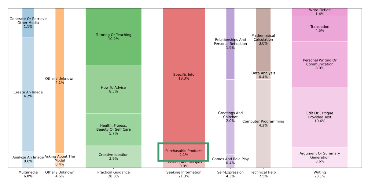 And when OpenAI looked at how people were using their product, they saw that more than 2% of those 18 billion weekly messages were from users asking about specific, purchasable products, even though ChatGPT had zero shopping functionality: