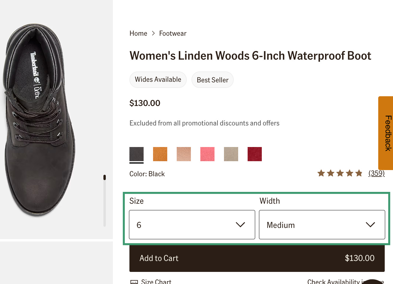For example, if I ask for size 6 and then click through to Timberland, size 6 women’s was already pre-selected for me: