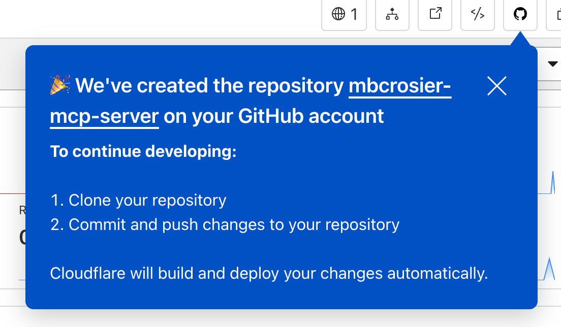 This will create a new remote MCP server for you, deployed via Cloudflare.