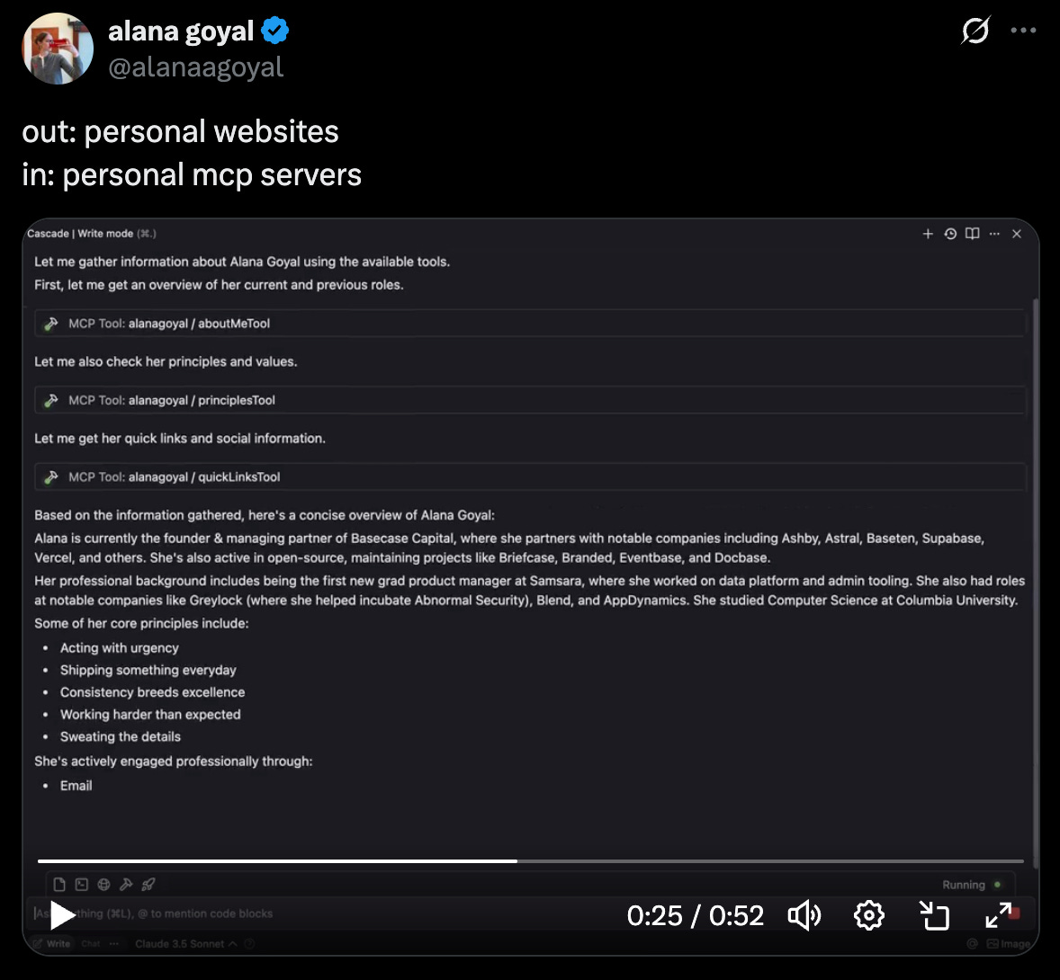 Realistically, personal MCP servers will likely remain a niche tool—similar to personal websites—primarily appealing to developers and entrepreneurs who want granular control over their professional narrative or an artifact to point people toward during a job search.